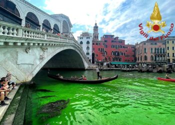 VENEZIA. È da questa mattina che le acque sotto il Canal grande della città Veneta sono diventate di colore verdi....