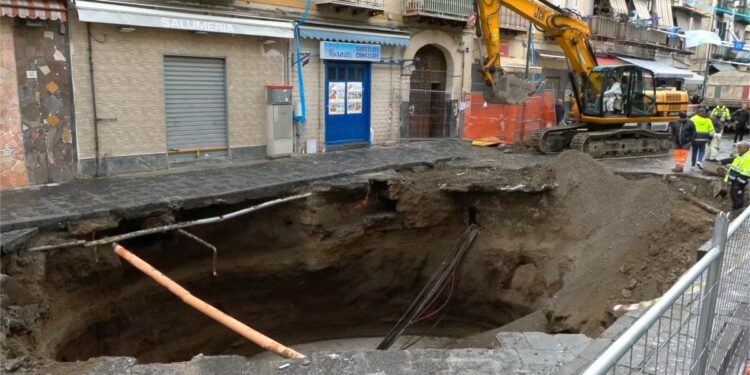 NAPOLI. Si è aperta un’enorme voragine a Via Cassano, a Secondigliano. Sono dovuti intervenire con urgenza gli addetti dell’Abc che hanno constatato la causa principale della voragine; sembrerebbe proprio che una grossa fognatura avesse collassato.