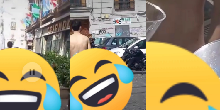 NAPOLI. Un pomeriggio a Forcella diventa qualcosa di bizzarro. Senza alcun apparente motivo, un uomo sta camminando per la strada completamente nudo. Un passante inizia a riprende la scena. “So cose e pazz'” dice nel video. Ad un certo punto lo ferma per la strada e gli dice che deve mettersi qualcosa addosso.