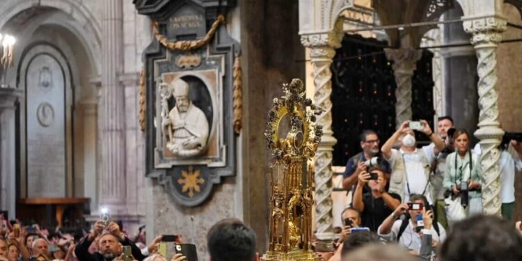 Ancora una volta, si è verificato il miracolo della liquefazione del sangue di San Gennaro nel Duomo di Napoli. Alle ore 9.55, all’apertura della cassaforte, l’Arcivescovo di Napoli, Domenico Battaglia, ha mostrato l’ampolla contenente il sangue. Questo evento è considerato dai fedeli un segno di buon auspicio per Napoli e la Campania. Tra i presenti in Cattedrale c’erano anche il sindaco Gaetano Manfredi e il presidente della Regione Campania, Vincenzo De Luca, che hanno accompagnato l’arcivescovo durante l’estrazione delle ampolle.