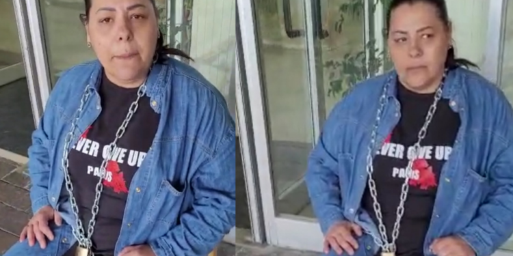 La donna, Margaret, annuncia di rimanere incatenata fuori all’ospedale fino a quando non otterrà risposta per il marito. Questa gravissima situazione di malasanità ha costretto la donna a prendere la drastica decisione di incatenarsi fino a quando il marito non verrà portato al centro di riabilitazione. Anche una squadra di polizia è intervenuta dove si vede in questo video, ma la donna è rimasta seduta.